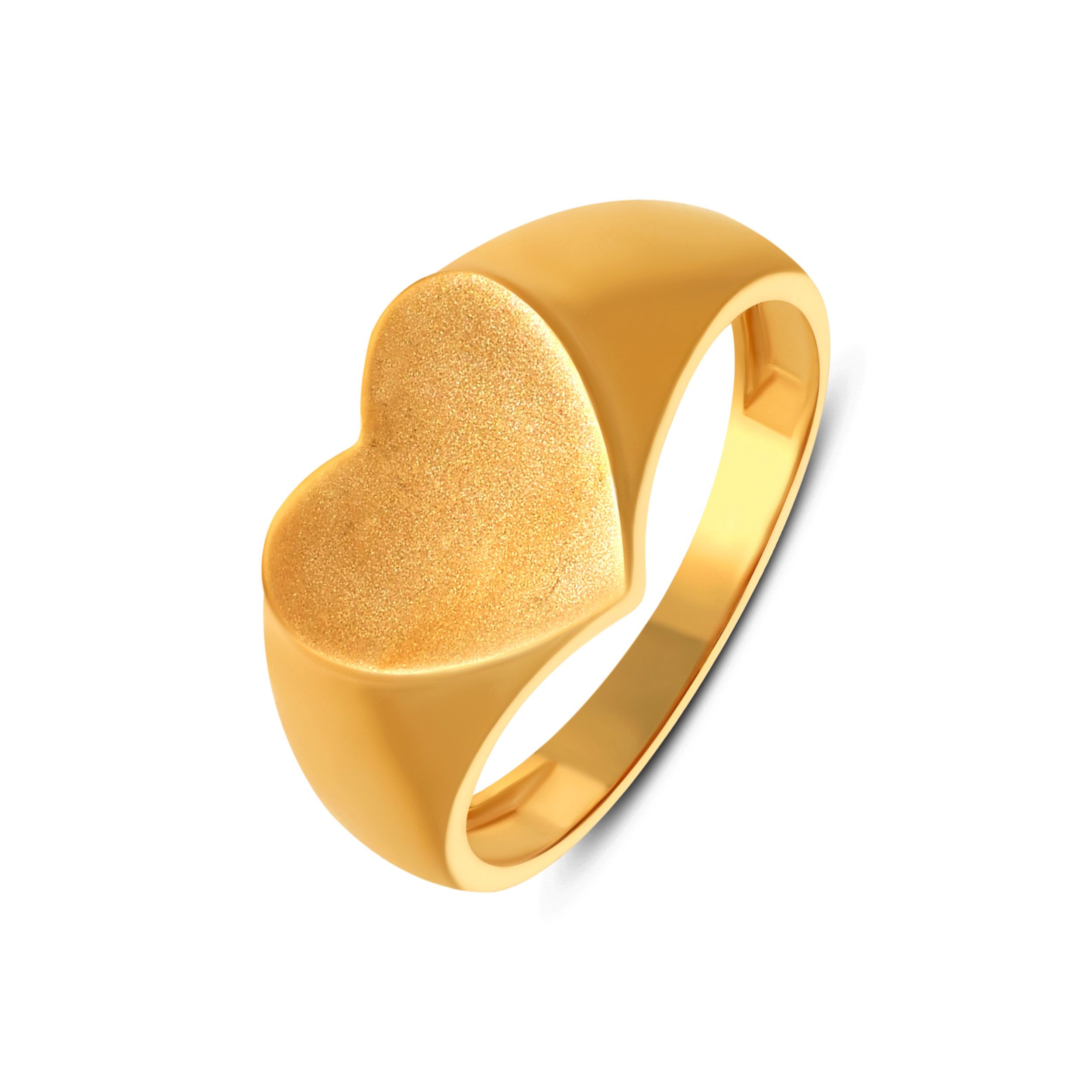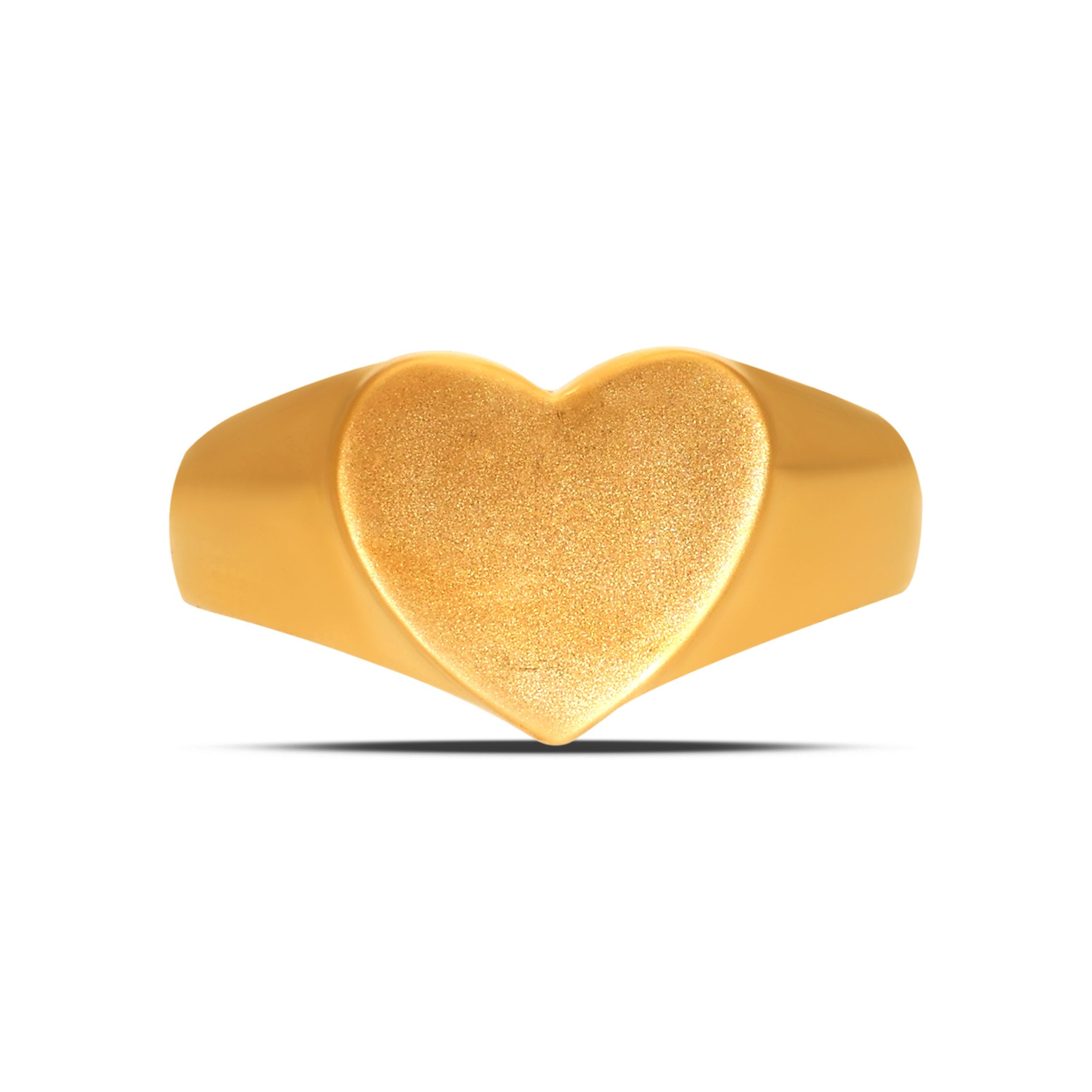 Bold, chunky, and unapologetically romantic, this gold heart signet ring features a sandblasted heart face set against a high gloss shank. The textured surface creates a soft velvet like glow that catches the light beautifully. A striking blend of vintage nostalgia and clean contemporary lines, this ring makes a confident everyday statement.