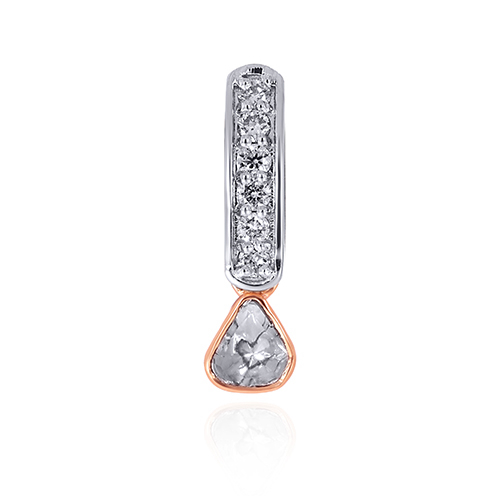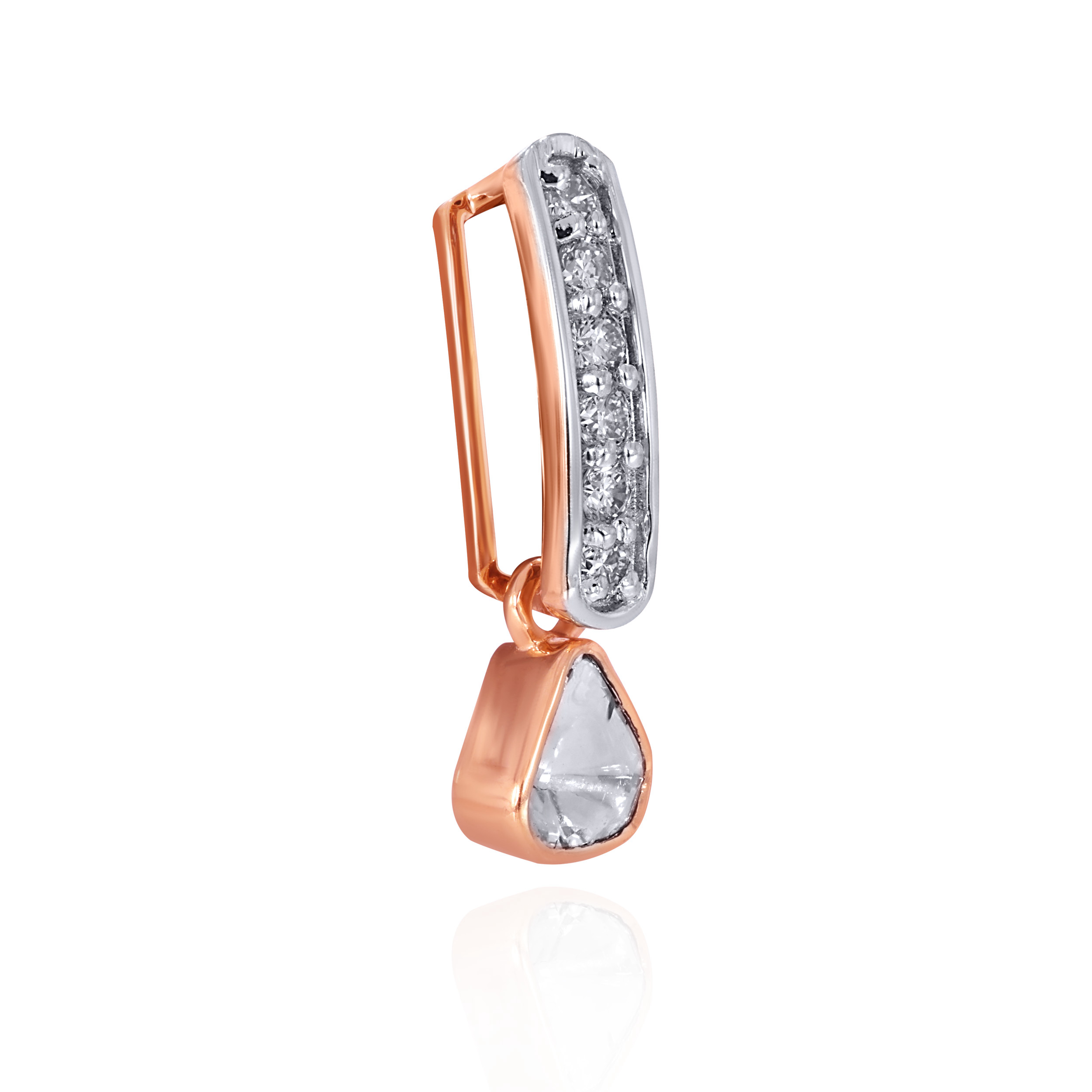 Rooted in old-world artistry, this pendant brings together the raw beauty of uncut Polki stones and the finesse of diamond detailing. The fluid form lends movement and grace, making it a piece that reveals its beauty slowly, with versatile wear.