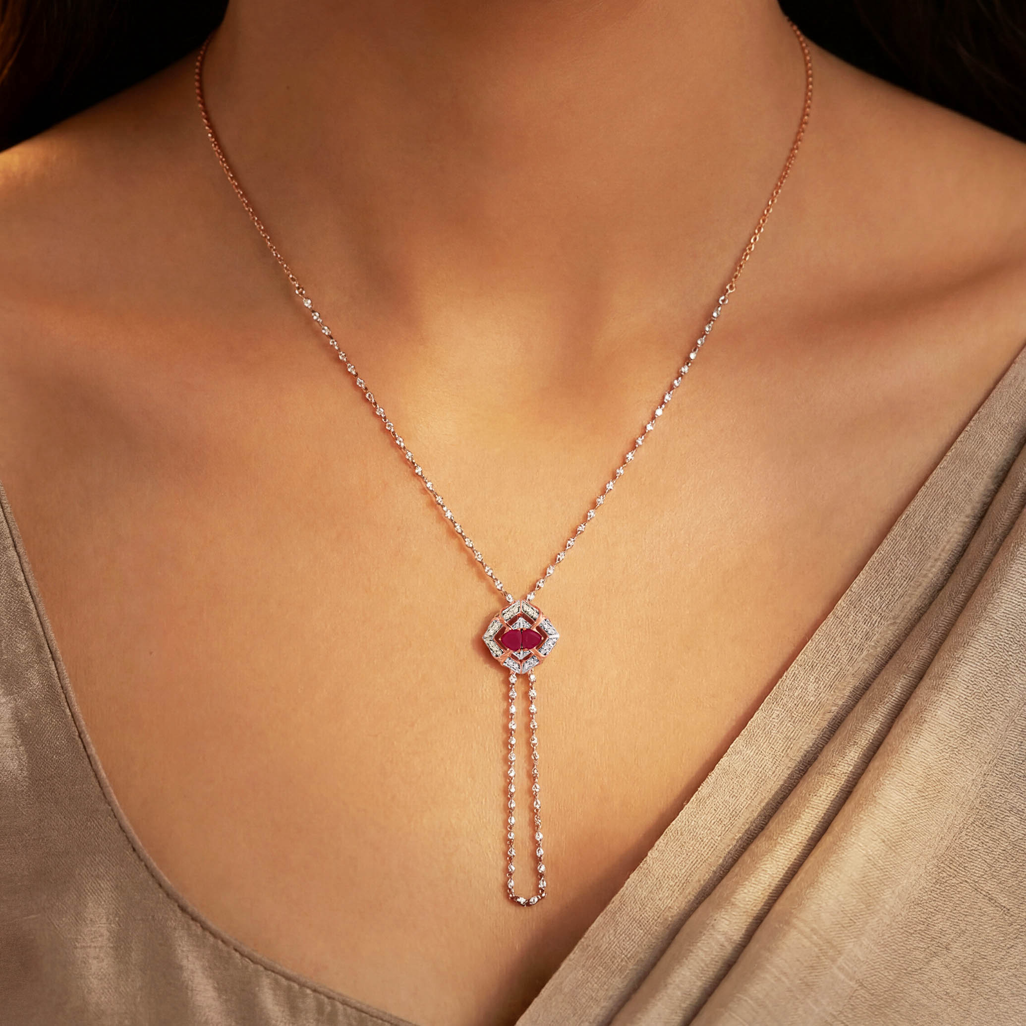 Reflecting the enduring allure of diamonds and gemstones, this lariat-style necklace blends vintage elegance with modern romanticism. The cascading diamond drops create a graceful, elongated neckline, lending the design a sense of effortless drama and refinement. Designed for soirées and gala moments, it is a timeless expression of classic romance crafted for the modern connoisseur.