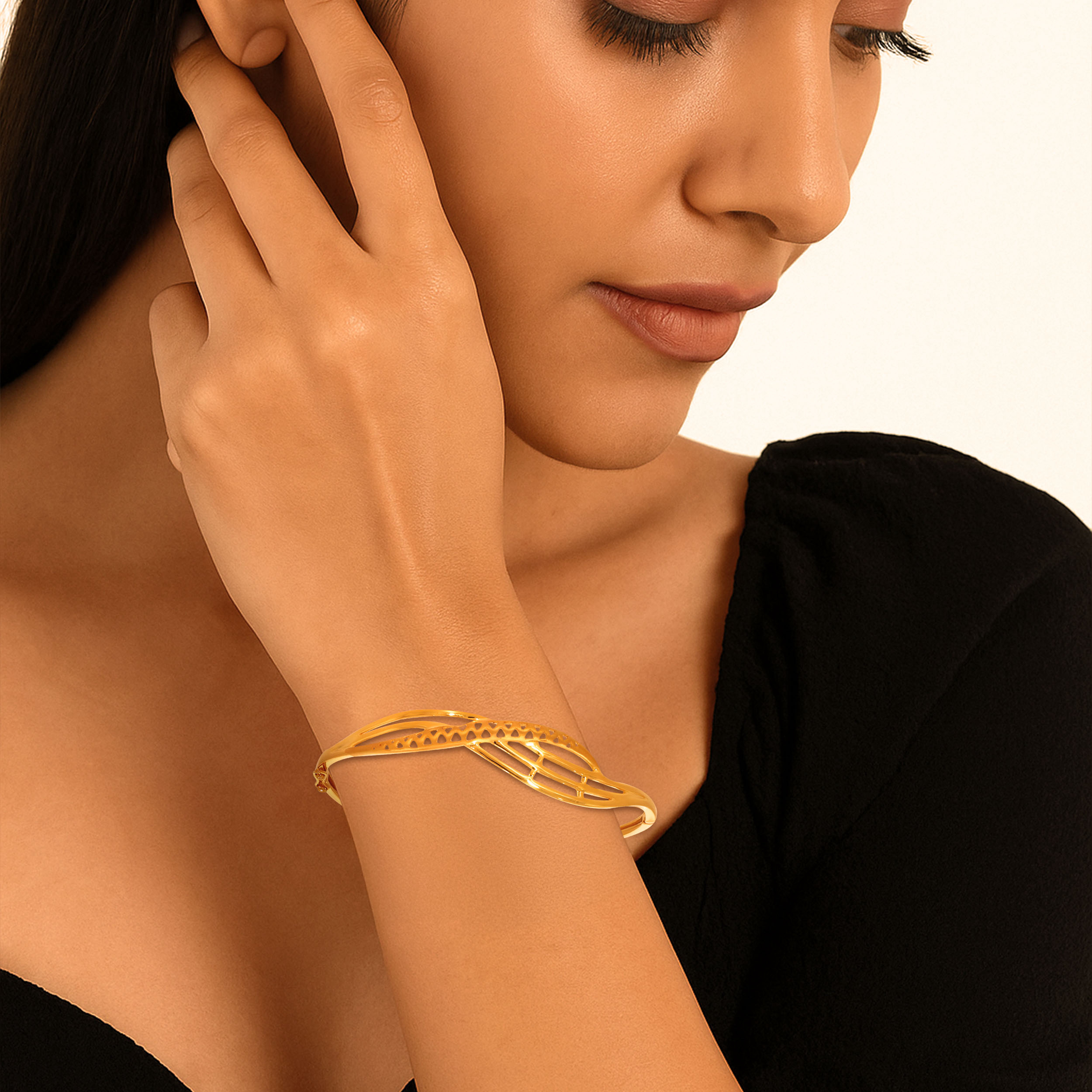 Designed to be effortlessly elevating, this gold chur is light yet visually striking. Its airy silhouette lends a refined sophistication that pairs seamlessly with both ethnic and Western ensembles. A versatile essential, it adds a soft gleam to everyday looks while transitioning gracefully into evening wear.